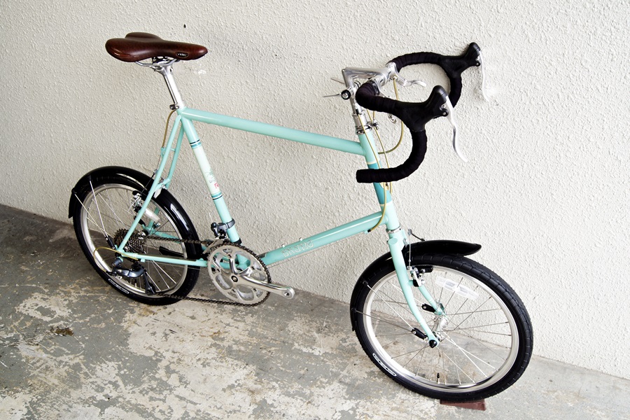 千葉県佐倉市にて買取させて頂きました。ありがとうございます。折り畳みではないクラシカルな雰囲気のミニベロドロップはいくつかのメーカーから出していますが、ブルーノのミニベロは少し変わっています。特にシートステーが微妙にカーブしていて、そのデザインがしなやかな乗り心地に良い影響と与えています。