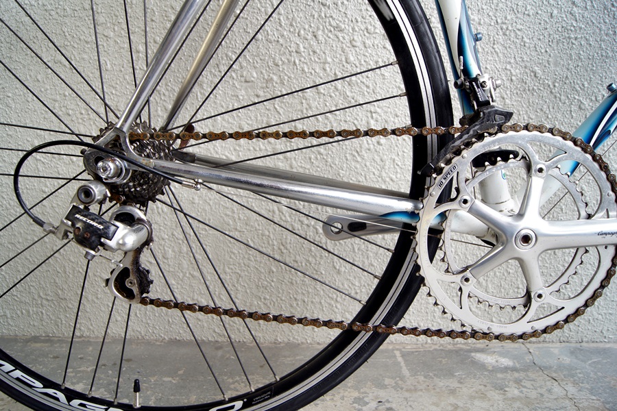 「年式不明ですが、カンパニョーロのレコードが搭載されたクロモリマシンです」