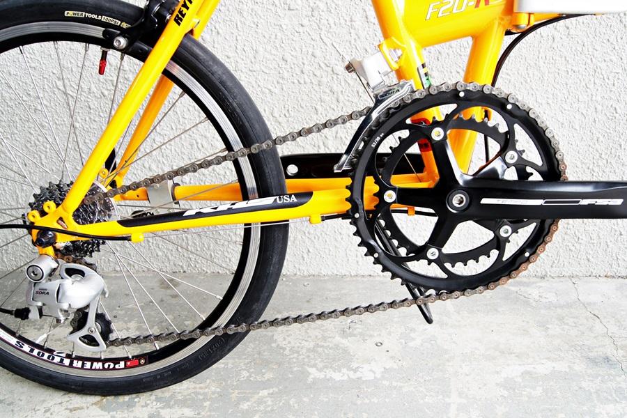 大分県別府市にて買取させて頂きました。ありがとうございます。KHSはミニベロメーカーの中でも少し変わったブランドです。折りたたみ自転車ですが、大体のモデルはスポーツライド指向でセットアップされています。他のメーカーがホイールベースを眺めにとりますが、このブランドはスポーツタイプとしては比較的に短めです。安定性はすこしなくなりますが、クイックな出足や、コーナリングを楽しめます。コンポーネントもロードセットもものが多いです。リヤは小さなサスペンションがセットされていますが、サスペンションというより、リンクがない構造なので、フレーム事体のしなりを利用しています。