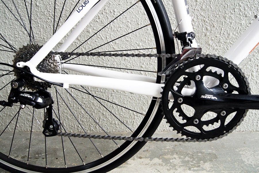 神奈川県小田原市にて買取させて頂きました。ありがとうございます。ルイガノの定番アルミロードバイクです。シートステーが他にはないフィッシュボーンタイプなのが特徴です。エントリーモデルとして快適な設計になっているようで、あまり前傾ポジションにならないようにジオメトリーが設定されています。メインコンポーネントにシマノのソラがセットアップされていて、クランクも含めてシマノセットと安心のモデルです。