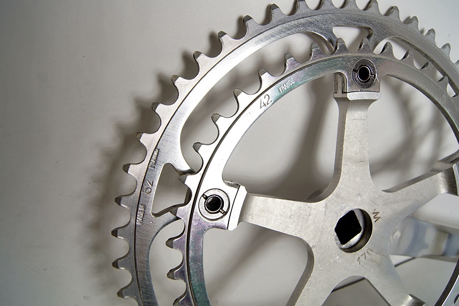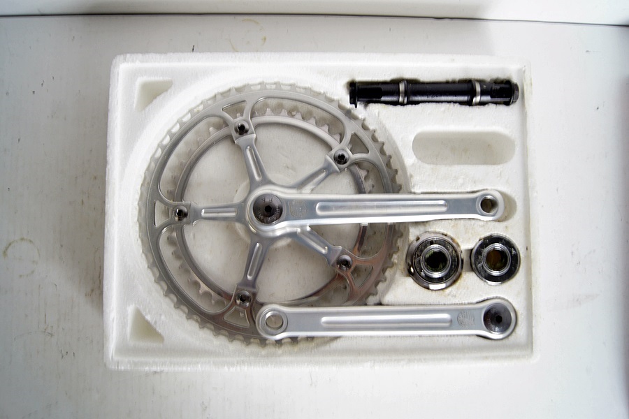 今回はTAのクランクからご紹介していきます。箱入りの未使用品という、完品状態です。なかなか箱入りのものはないですが、この時代のユーザーはかなり大切にしていたのか、箱の状態もなかなかのものです。途中でクルッピのクランクもご紹介しますが、昔のアルミの削り出しのクランクは味わい深いものがありますね。キレイに仕上げていますが、削り出し感があって、それが独特の光沢を放ち美しく見えます。