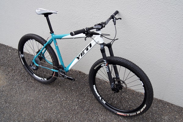 自転車・パーツの種類:マウンテンバイク 「イェティの2014年モデルが入荷しました。アメリカンのマウンテン工房の中でも異彩を放っていたブランドですが、現在ではちょっと趣が変わっています。ですがトレードカラーでもあるターコイズカラーは健在で、このARCはスクエアパイプが特徴出来たが、そういった雰囲気はしっかり残しています。ちょっと残念なのがイエティのドリフトマークが、少しかっこ良くなってしまっている事です。そこは昔のまま出よかったような。まあ色々と事情もありそうです。今回のお買取車体は、細かなパーツチョイスまで、気を使っていてとても高級感のある仕上がりになっています。」
